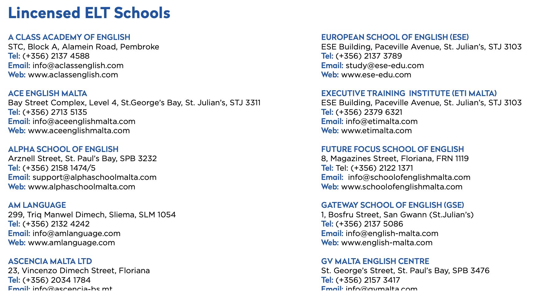 特に安心材料になるのは、マルタのELT Council(英語教育評議会)が認可を受けた語学学校の一覧を公表していることです。これにより、保護者は「どの学校が正式に認可されているか」を事前に確認しやすく、短期留学先を選ぶ際に、良い語学学校を安心して選びやすくなります。