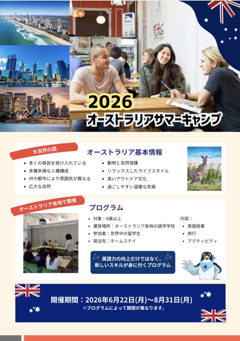 首都 :キャンベラ面積 :7,692,024㎢(世界6位)人口 :2,600万人公用語:英語通貨 :オーストラリアドル(AUD)